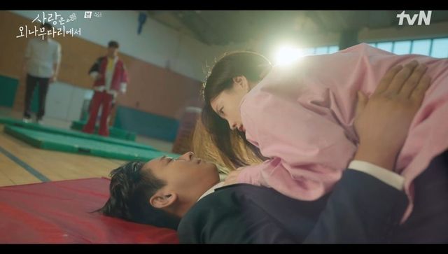 취임식이 열릴 체육관을 둘러보러 나선 윤지원, 공문수, 석지원. 맹수아(전혜진)는 흔들리는 사다리에 오른 석지원을 보면서 “드라마 같은 데서 보면 별안간 남자가 떨어진다. 그럼 여자가 얼쩡거리다 같이 넘어진다. 그러고 슬로우모션으로 눈이 맞으면서 어쩐지 막 그날부터 서로가 신경 쓰이기 시작한다”라고 예고했다. 석지원은 “안 떨어진다”고 했고, 윤지원은 “피하면 그만”이라고 열을 올렸다. 하지만 학생들이 튀긴 농구공에 석지원은 중신을 잃고 쓰러졌고, 윤지원은 곧장 달려갔다. 결국 맹수아의 말처럼 쓰러지면서 같이 넘어졌고, 눈을 마주치며 묘한 기류가 생겼다.