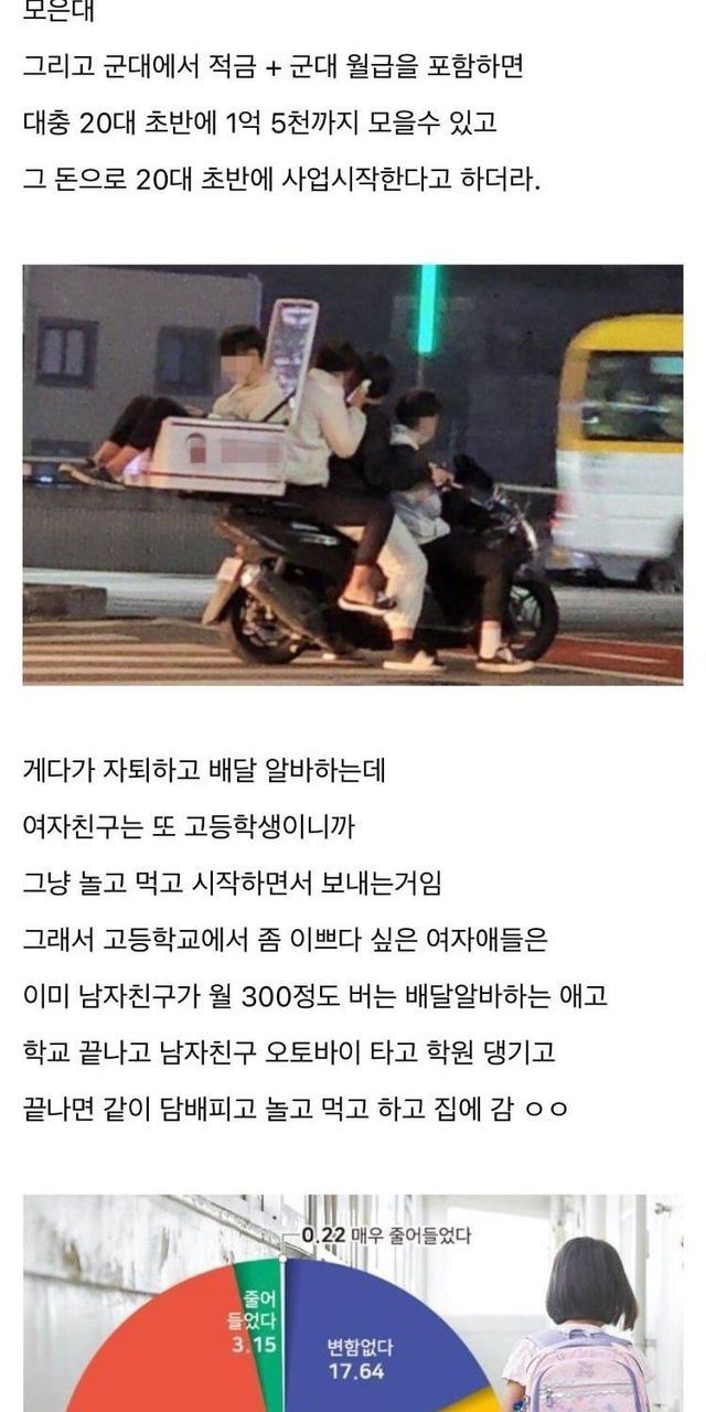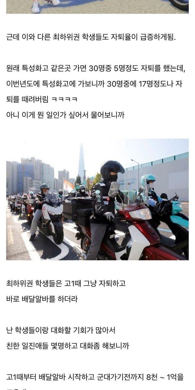 공부 못하는 노는 학생들도 일찍 돈 벌려고 자퇴해서 배달 알바 하는 사람들이 많은듯...