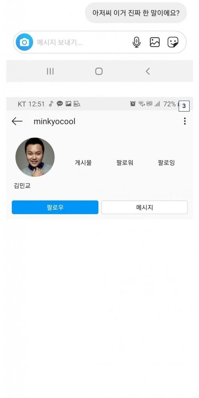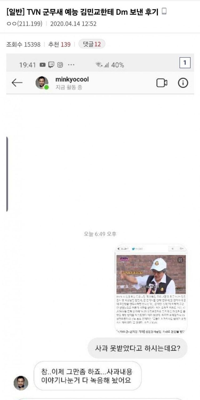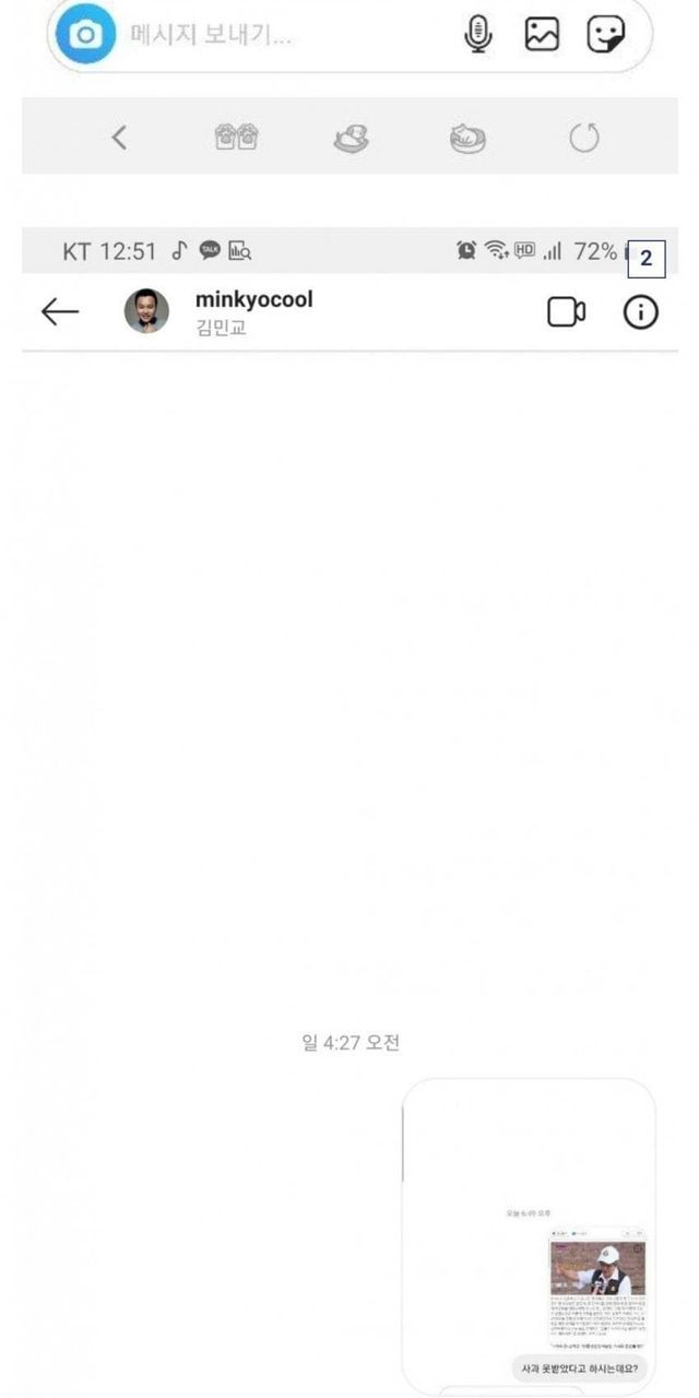 왜 사과한적도 없으면서 구라쳤느냐며 인스타그램으로 캐묻자