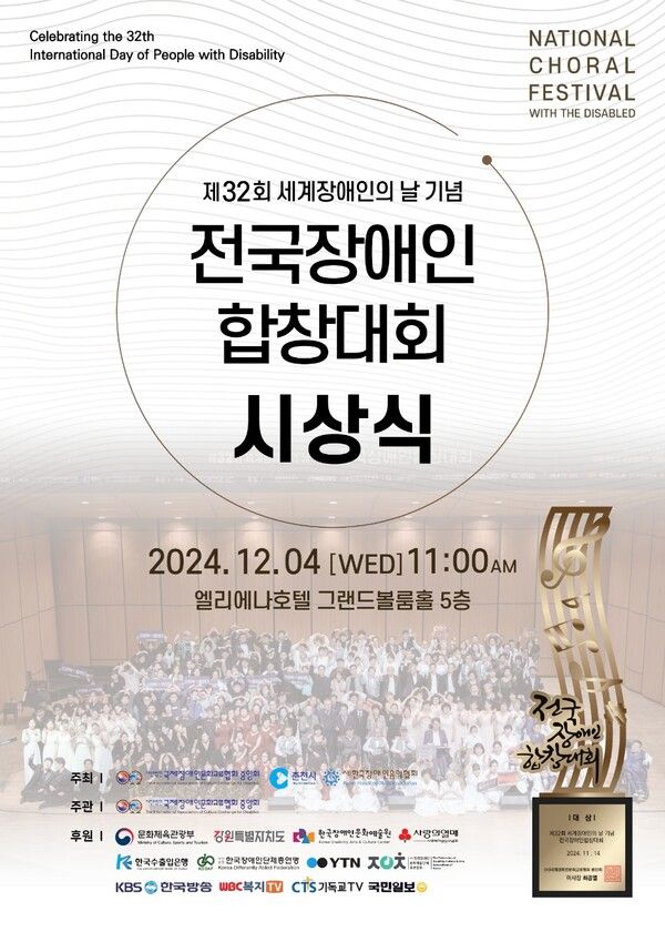 사단법인 국제장애인문화교류협회 중앙회(이하 국장협)는 2일 “‘제32회 세계장애인의 날 기념 전국 장애인합창대회’ 시상식이 오는 4일 서울 엘리에나 호텔에서 진행될 예정“이라고 밝혔다.