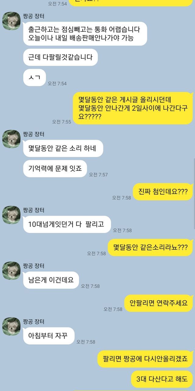 (짱공에서 직거래문의 많은지 처음 카톡한건데 자꾸 예전에 문의안했냐고 함 ㅋㅋㅋㅋ. 그분께 일요일에 팔지. 몇달째 글만올림)