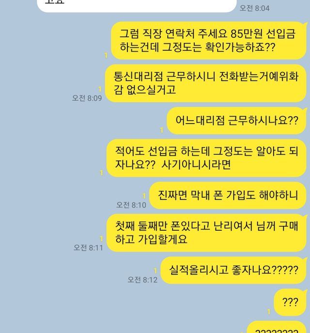 실적올려드린다고 딸아이 신규가입 및 직거래 하자고 하니