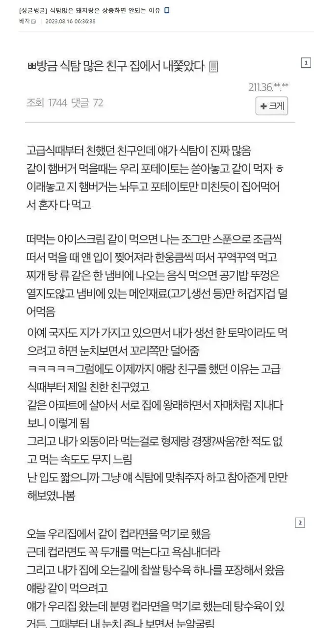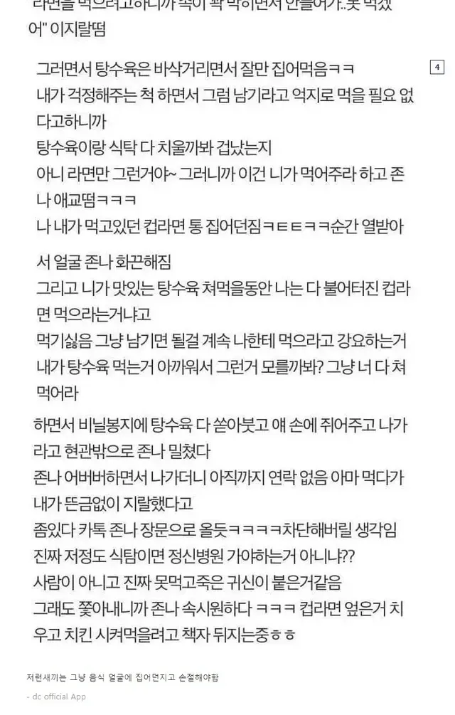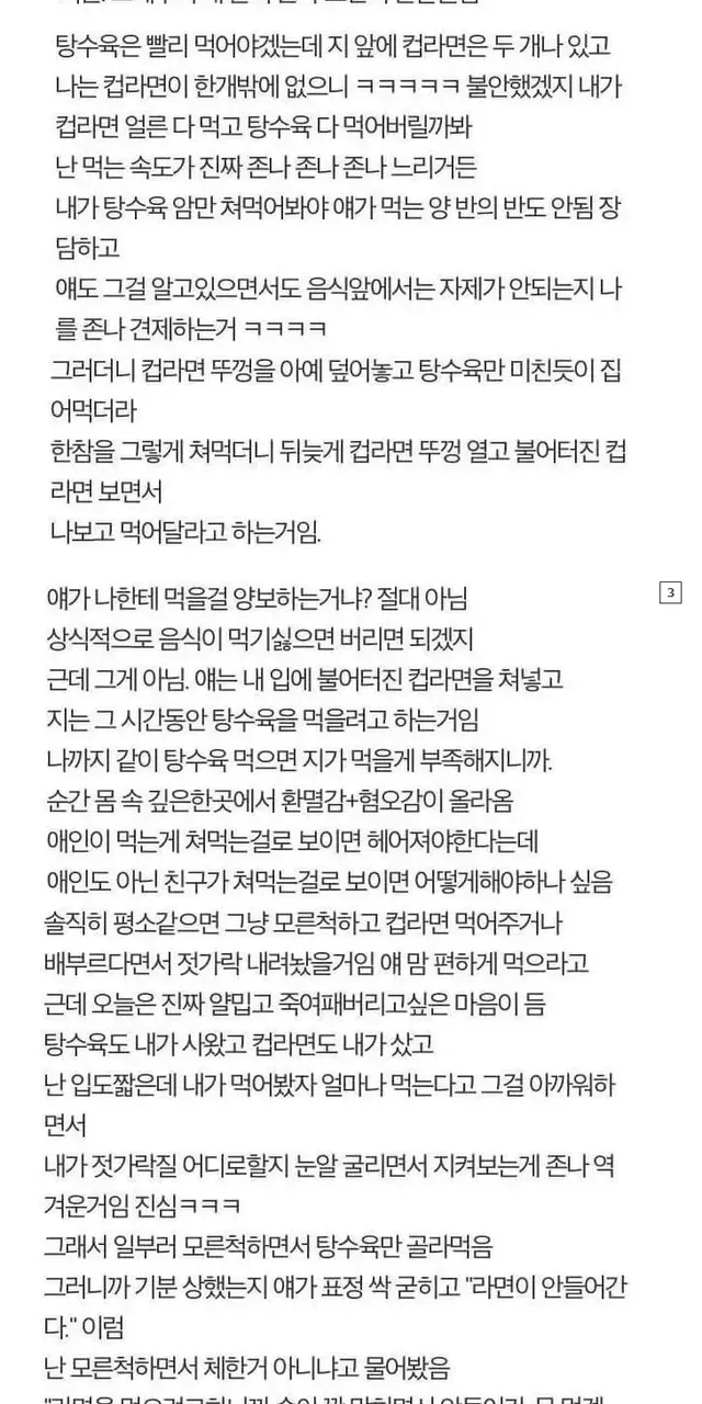 한달 후임인데 먹을꺼 사서 꼭 밤에 혼자 먹음