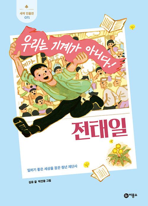 "우리는 기계가 아니다" 노동자가 기계가 아니라는 너무나 당연한 이 말을, 청년재단사이자 노동운동가였던 전태일은 1970년 11월 13일 서울 동대문 평화시장 앞에서 온몸을 불사르며 외쳐야 했다. 그런 전태일의 이야기가 누적 판매량 100만 부 돌파한 '새싹 인물전' 시리즈에서 출간됐다. 먹고 살 것이 없어서 서울로 이사를 가고, 동생들을 굶길 수 없어 일을 시작하고, 온종일 일해도 밥 한 끼를 먹지 못하던 시장 일을 지나 최소한의 인권이 지켜지지 않는 공장의 노동. 그리고 한 줄기 빛과 같았던 근로기준법의 존재... 전태일이 투사가 돼야만 했던 이야기가 담겨있다. 오늘날 전태일은 인권 신장을 위해 앞장선 인물로 초등 사회 교과서에 실려 있다. 그의 일생을 따라가며 그 정신을 기려보고, 사회를 돌아볼 기회.