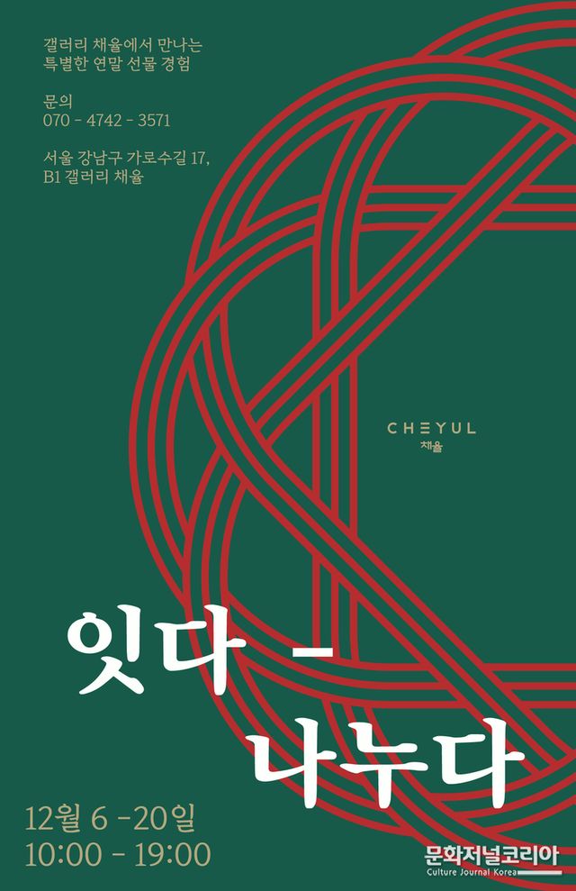 문화저널코리아 오형석 기자 | 연말 선물을 준비하는 이들에게 전통과 현대가 어우러진 특별한 만남을 제안하는 전시가 열린다. 서울 강남구 가로수길에 위치한 갤러리 채율은 오는 12월 6일부터 20일까지 연말 기획 전시 ‘잇다- 나누다’를 개최한다고 4일 밝혔다