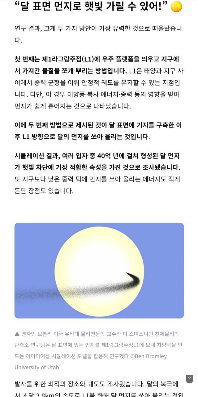 달표면 먼지를 태양으로 날려서 막기