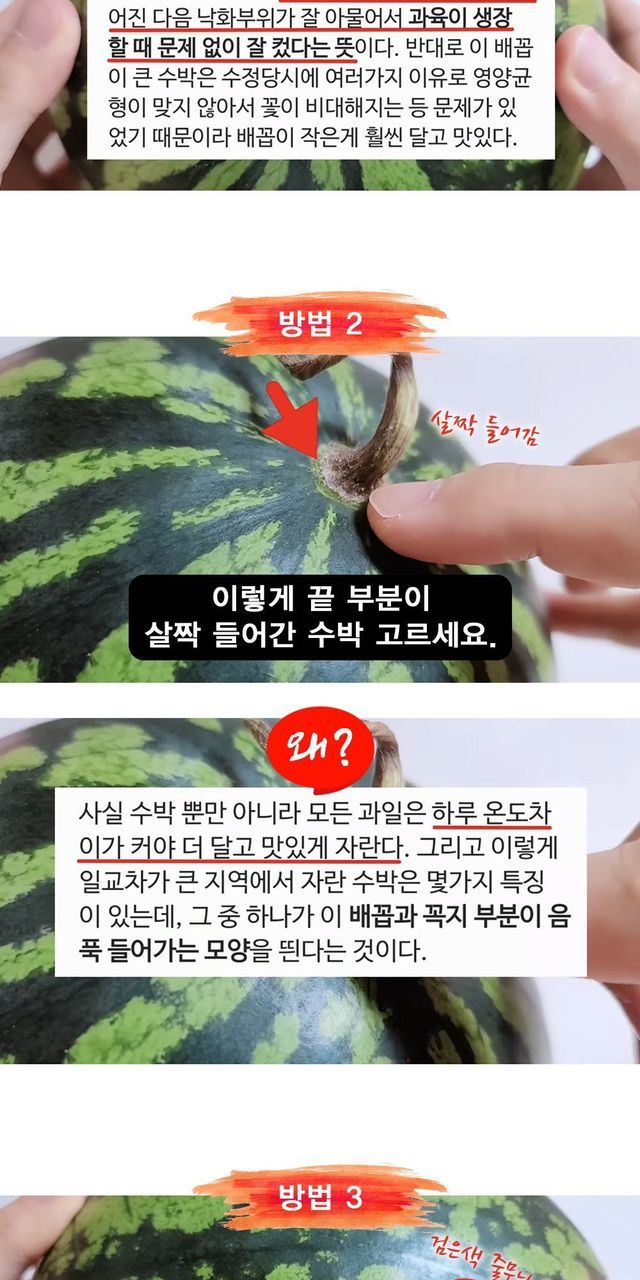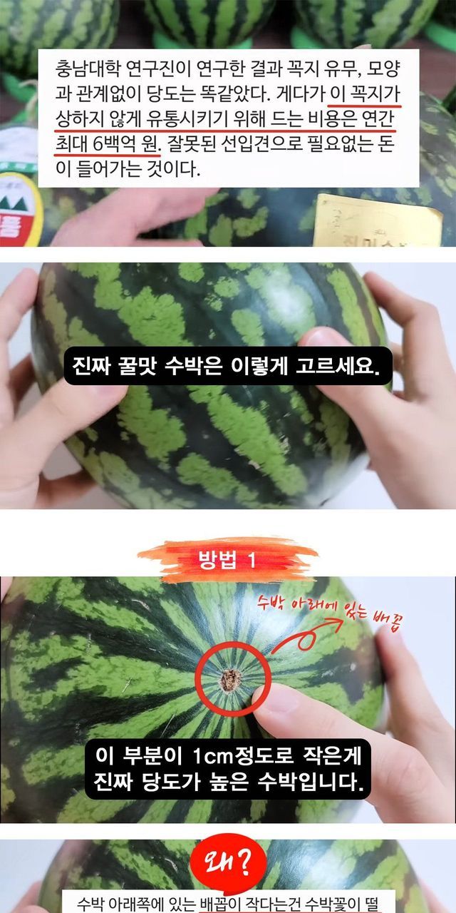 1. 수박 밑둥크기 작은걸로 골라라