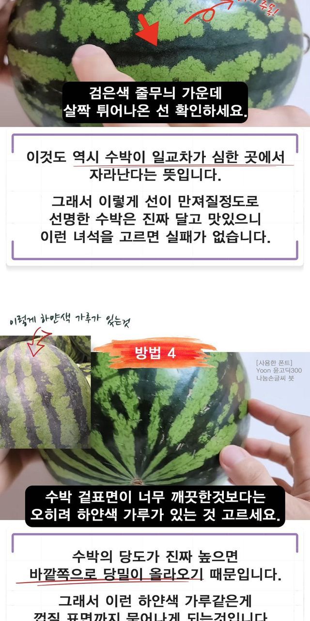 4. 수박 겉표면에 하얀색 가루 있는거 골라라