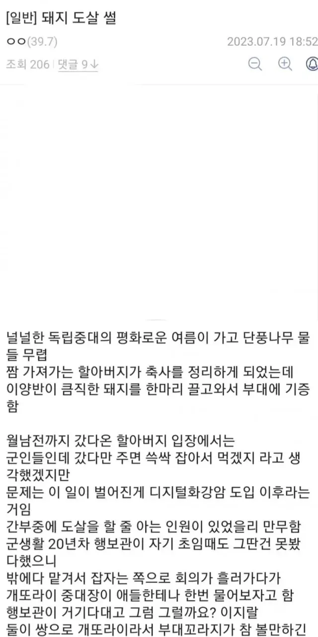 다른 커뮤니티에서 돼지잡은 글을 읽고 옛날생각이 나서 써봅니다.