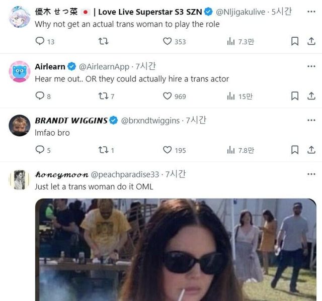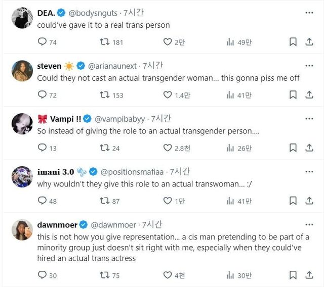 왜 실제 트랜스젠더를 캐스팅하지 않았냐고 까는 중...