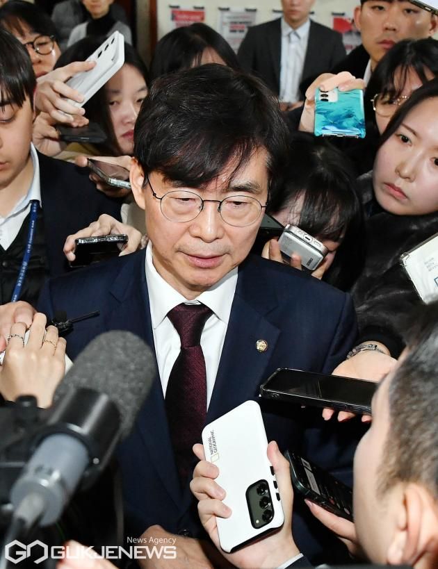(서울=국제뉴스) 조경태 국민의힘 의원이 6일 오전 서울 여의도 국회에서 '윤석열 대통령 탄핵' 관련 취재진의 질문에 답변하고 있다./사진=이용우기자