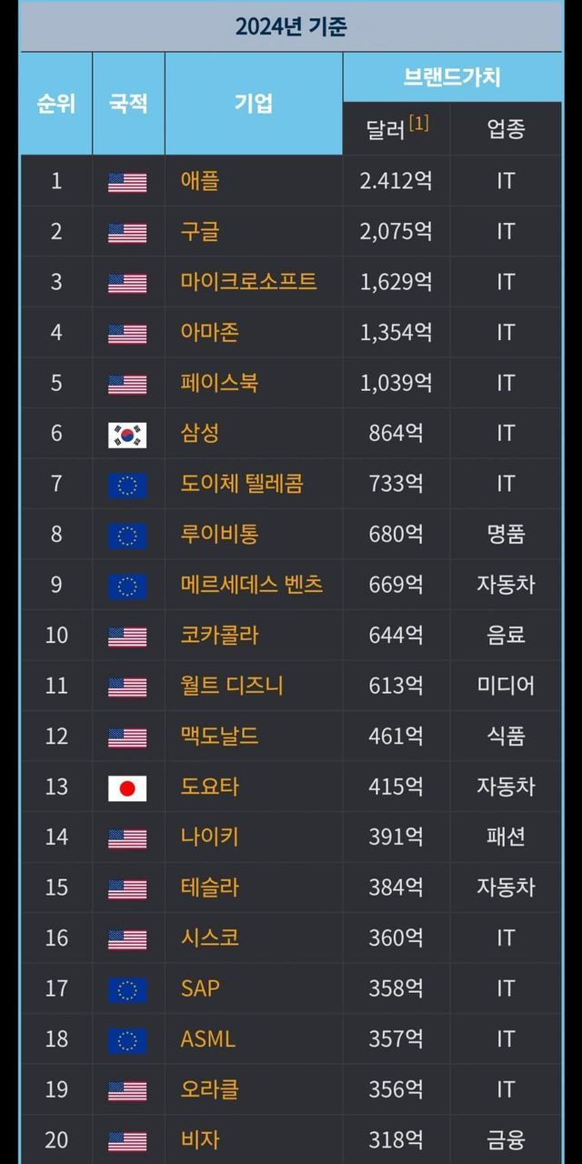 1위 애플 (IT,소프트웨어)