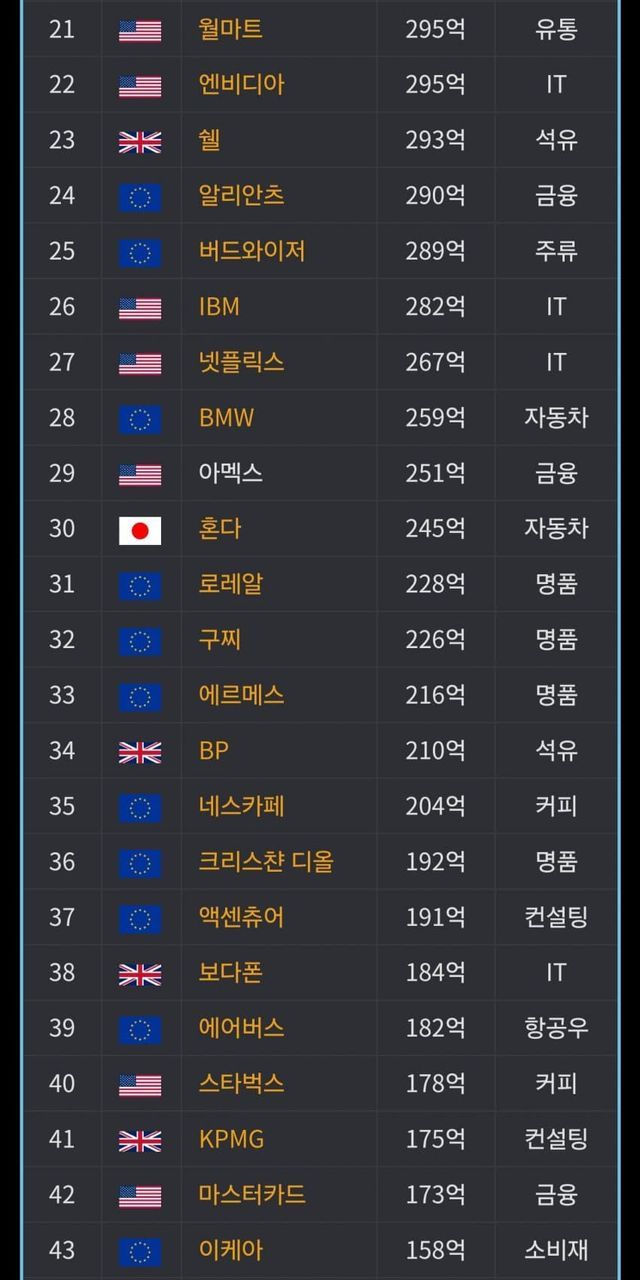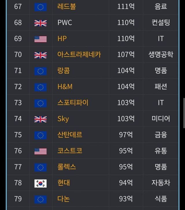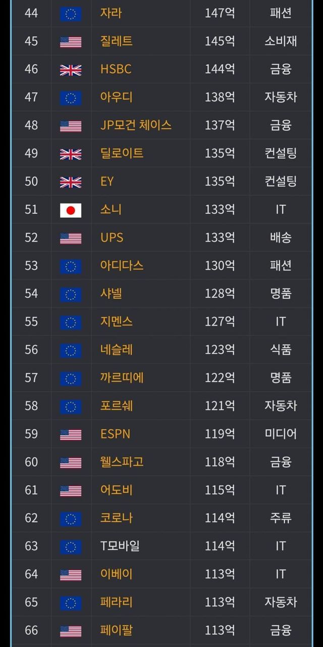 글로벌 브랜드가치 순위