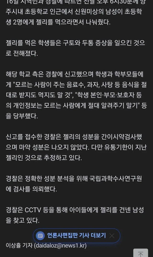 아이들이 외부인이 주는 음식 못 먹게 주의, 교육해야 할 듯