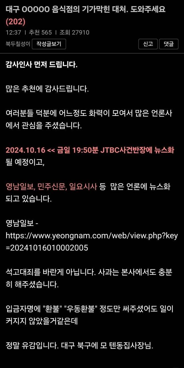보배드림에 올라온 우동집 사건