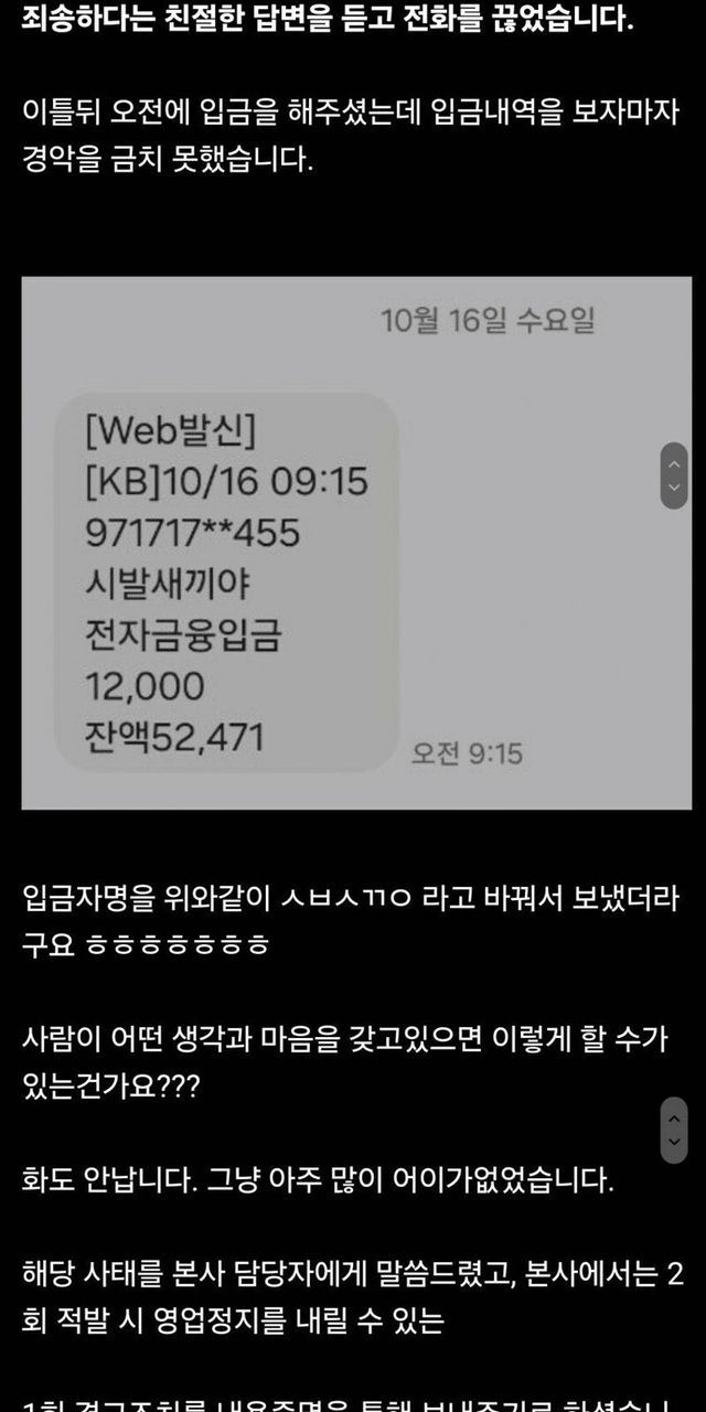 ???: 환불금액으론 좌송한마음을 다못전해거