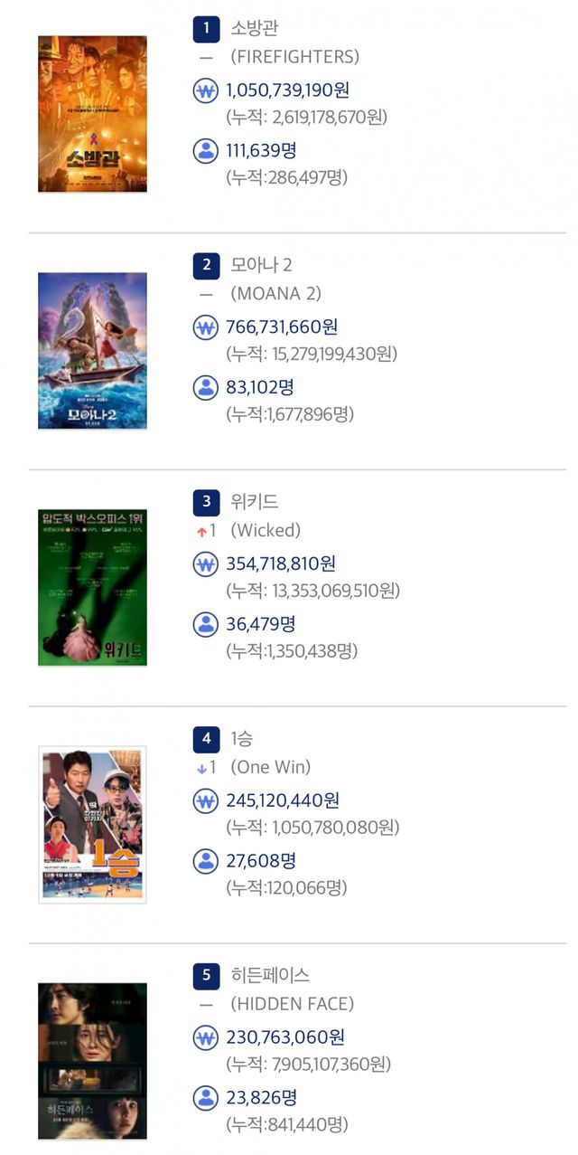 다른 상위권 영화는 금요일에 관객수가 반등했음에도