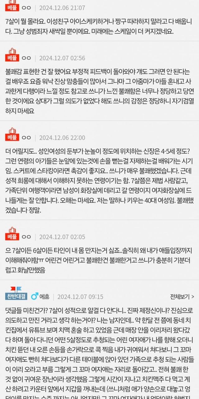 댓글들 무슨 어린 7살짜리를
