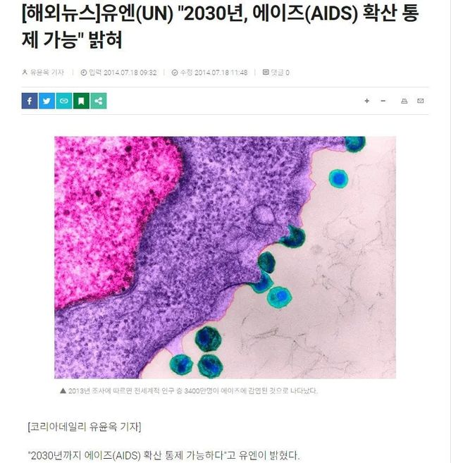 유엔 산하기관 UNAIDS에서는 본래 활발한 연구를 토대로 20년 안에 에이즈 완전 통제라는 야심찬 꿈까지 발표하고 있었음