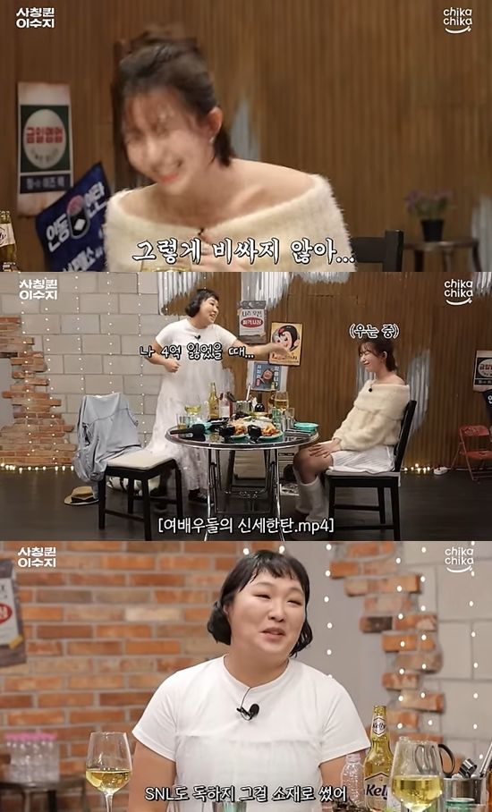 이수지는 "나 4억 잃었을 때 그 사실을 누가 유튜브에 올렸는데 베스트 댓글이 '야, 연예인들 하는 말 믿지 마라. 이수지가 4억밖에 없다고?'였다"라며 당시 상황을 전했다.