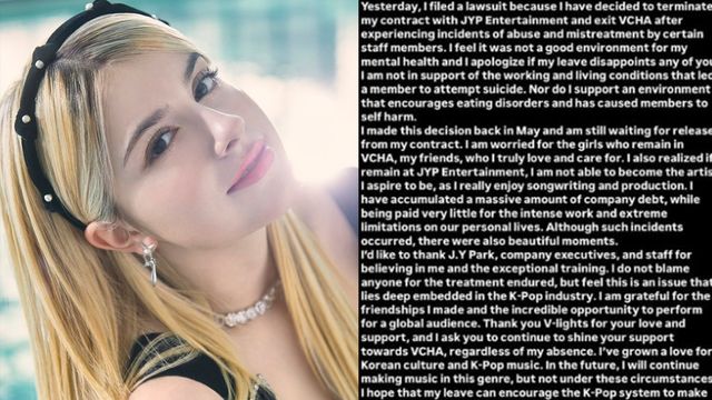 [TV리포트=박정수 기자] JYP엔터테인먼트 글로벌 걸그룹 비춰(VCHA)의 멤버 케이지가 소속사 직원으로부터 학대를 경험했다고 주장하며 팀 탈퇴를 선언했다.