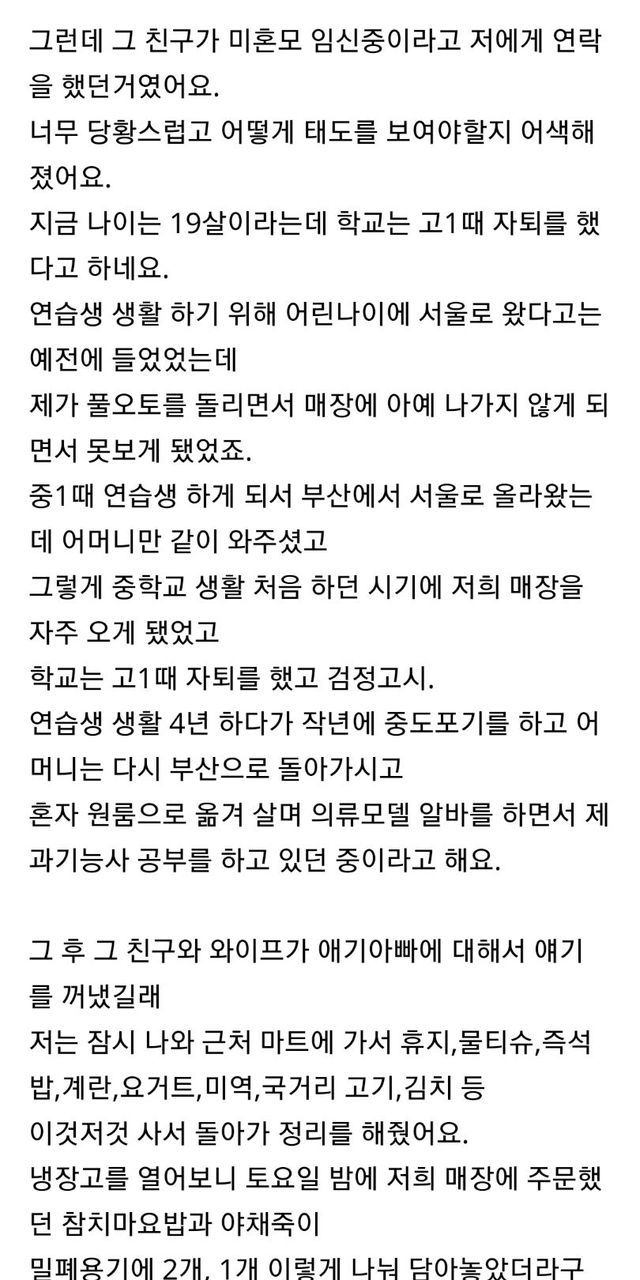 그 학생이 미혼모가 되어있어서 상당히 당황했는데