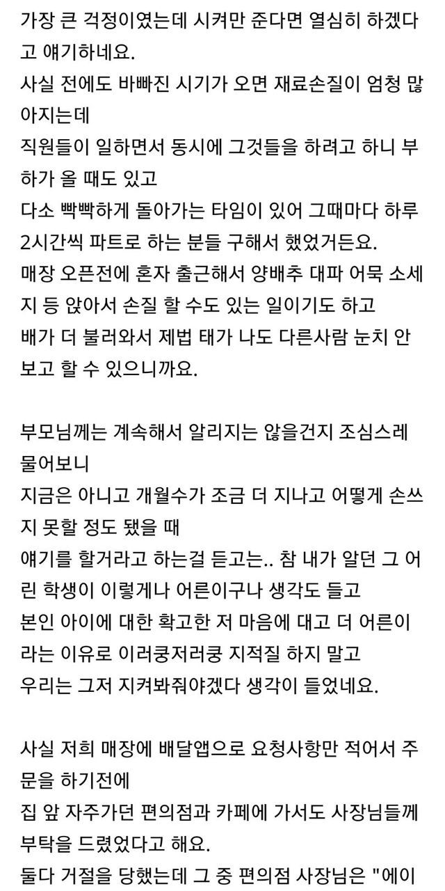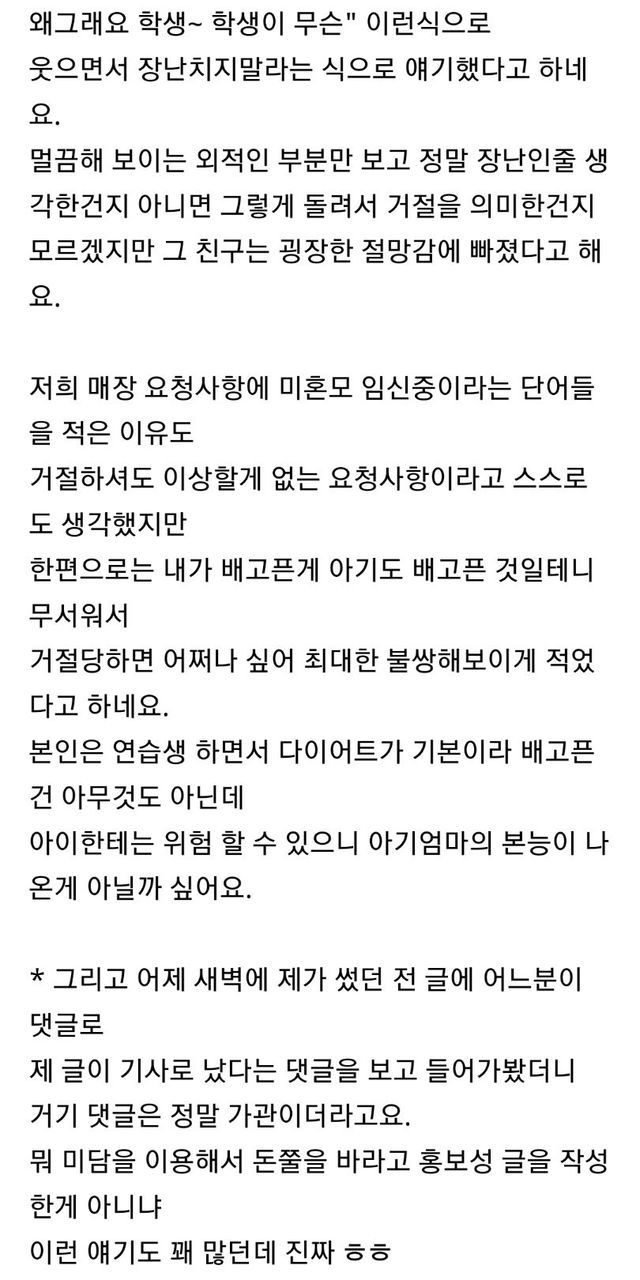 이 가게에 요청하기 전에 다른 가게에서 거절을 여러번 당해서 절망하던 상황이였다고