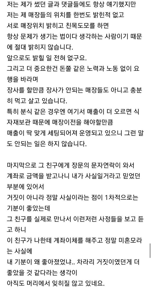 그리고 돈쭐이니 뭐니 그런거 필요없으니 가게 어딘지 안밝힌다고 함