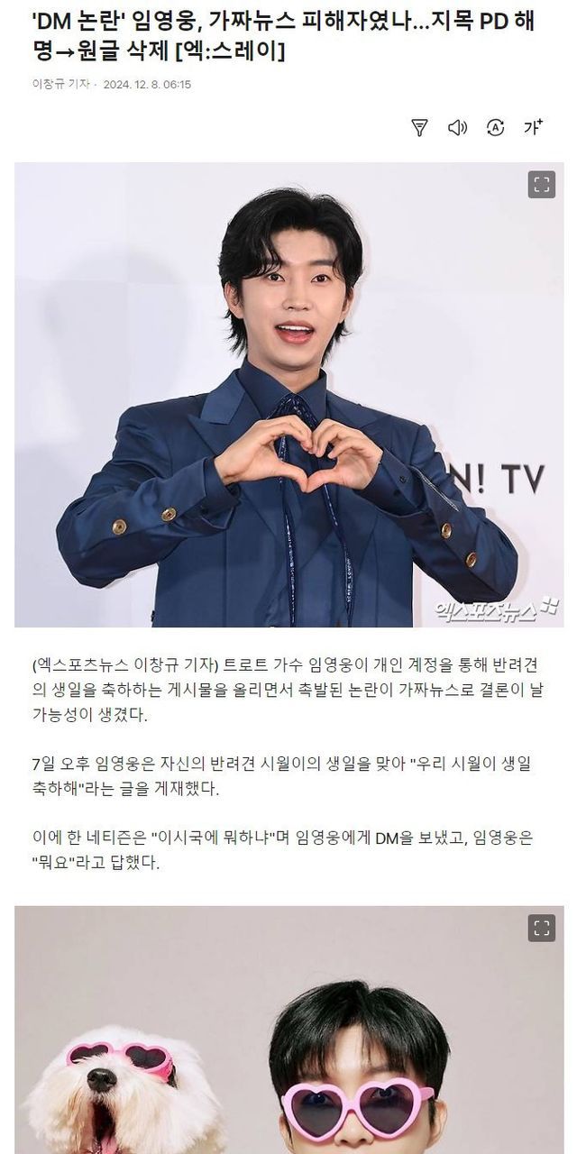 저 PD가 임영웅한테 디엠을 보냈다고 기사 나옴