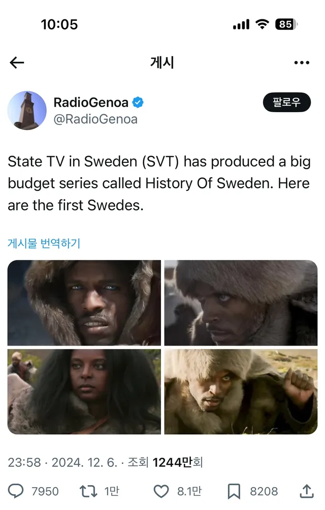 스웨덴 방송국에서 거액의 예산을 투입하여 고증해낸 인류정착 초기의 스웨덴인들 사진임