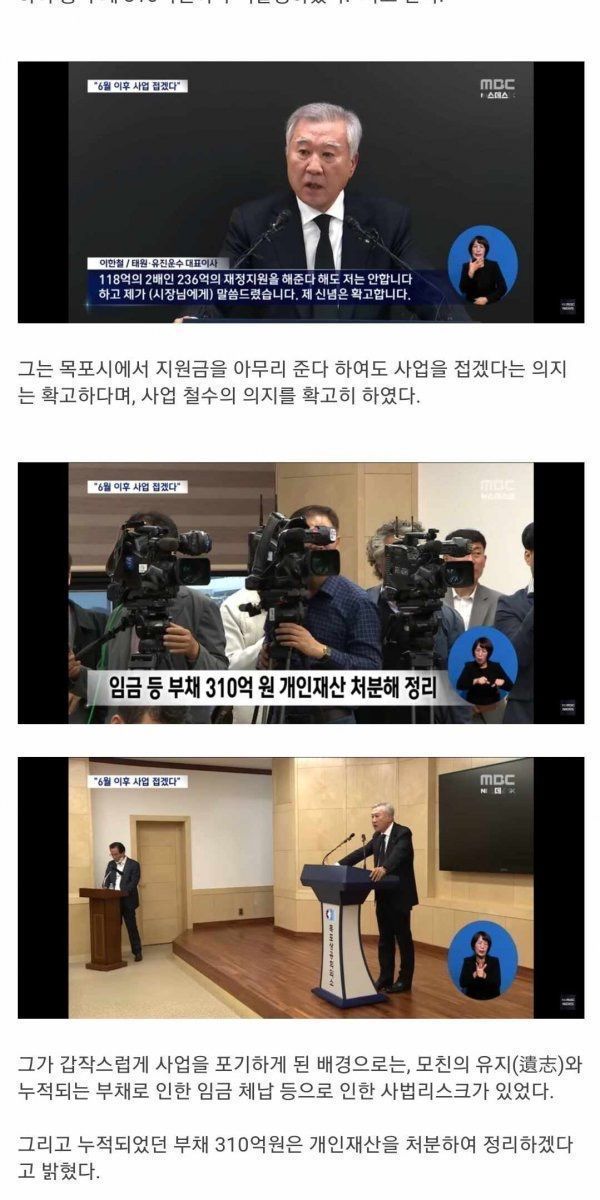 저 회사는 20년넘게 목포에서 영업을 하고 연간 몇십억 단위 최근에는 100억 이상의 세금을 계속 지원금으로 받아옴