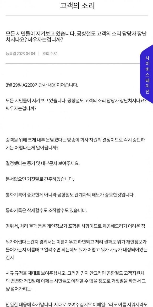 3. 답변이후 마음에 들지않는다 2차 민원에 이어