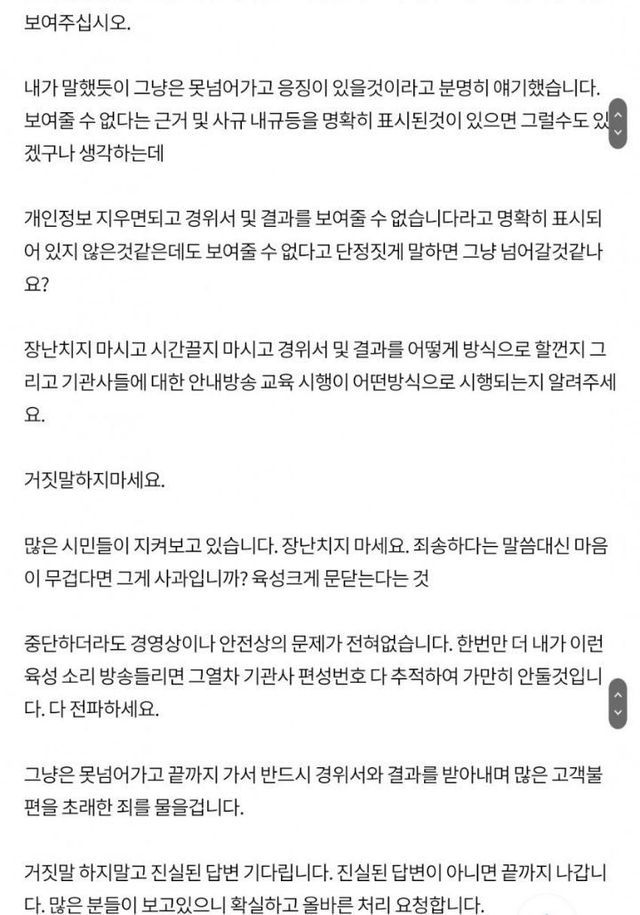 오늘 끝까지 괴롭히겠다 3차 민원 선언