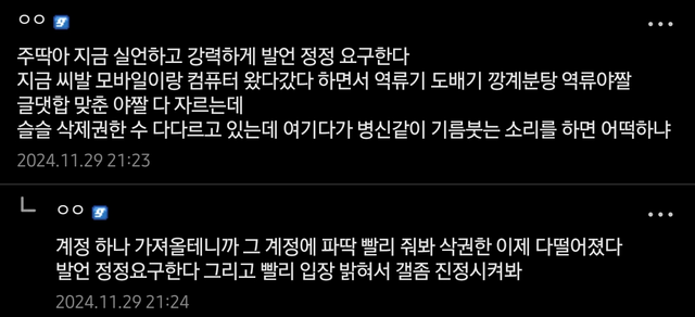 소신발언하는 고닉들까지 싸잡아서 분탕충 취급함