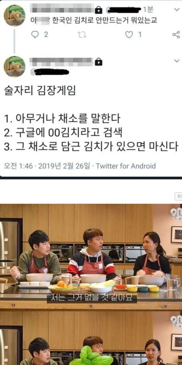술자리 김장게임 하는사람들 걸려서 술먹어라고