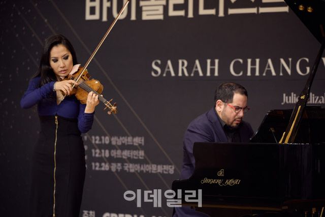 이번 공연은 사라 장의 내년 데뷔 35주년을 앞두고 마련됐다. 10일 성남을 시작으로 울산, 고양, 익산, 청주 등 13개 도시를 찾는다. 오는 29일 서울 예술의전당 콘서트홀 공연이 투어의 대미를 장식한다. 피아니스트 훌리오 엘리잘데가 함께 무대에 오른다. 두 사람은 같은 줄리아드 음대 출신으로 10여 년 전부터 음악 파트너로 호흡을 맞춰왔다.
