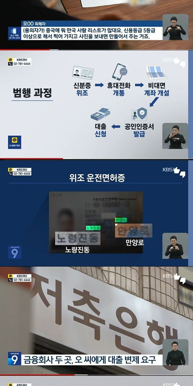 사기꾼들이 운전면허증을 위조해 인터넷 은행, 저축은행, 캐피탈회사 총3곳에서 비대면 대출로 받았음