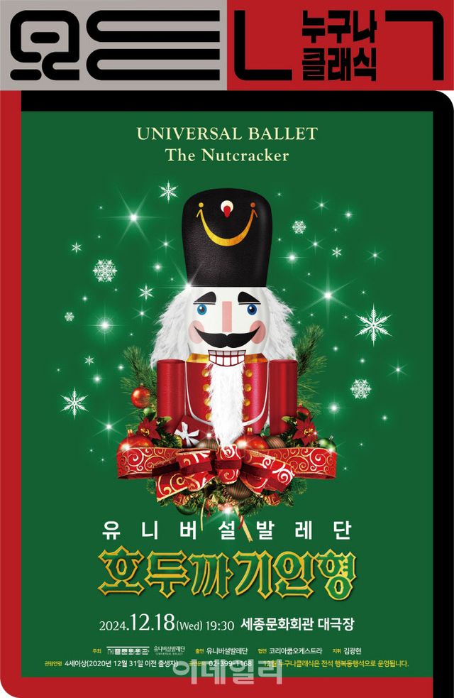 이번에 선보이는 ‘호두까기 인형’은 유니버설발레단이 출연하고 지휘자 김광현과 코리아쿱오케스트라가 연주를 맡는다. 클라라 역은 발레리나 전여진, 호두까기 왕자 역은 발레리노 드미트리 디아츠코프가 맡는다.