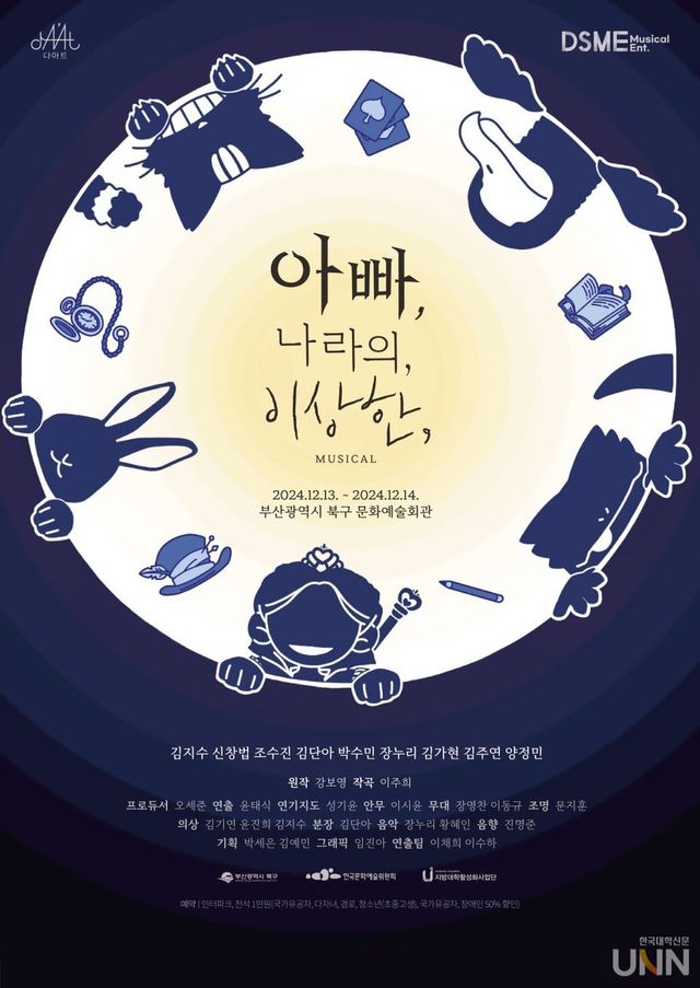 [한국대학신문 이정환 기자] 뮤지컬컴퍼니 ㈜다아트가 제작해지난 2월 서울 예술의 전당 자유 소극장에서 공연한 뮤지컬 ‘이상한 나라의 아빠’가 부산에서 R&D를 거쳐 새롭게 첫 선을 보인다.