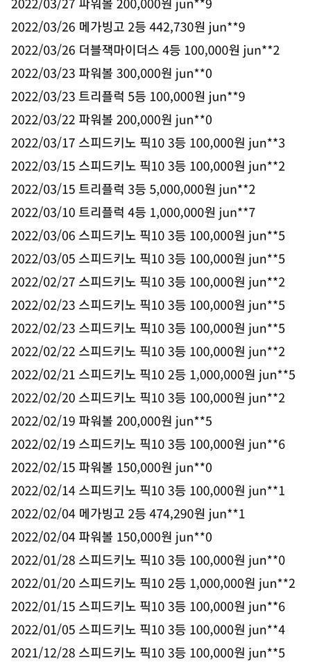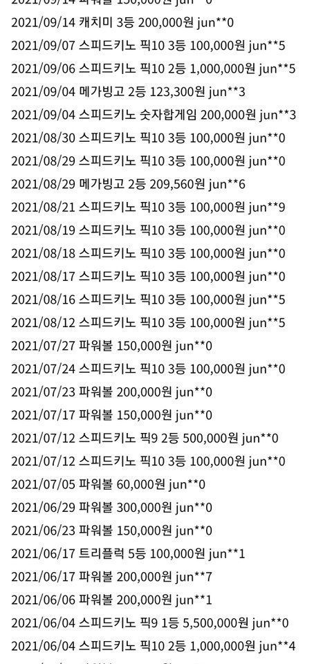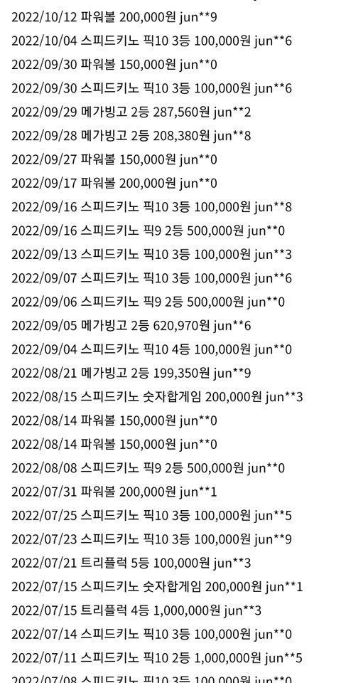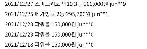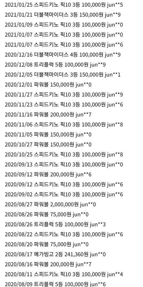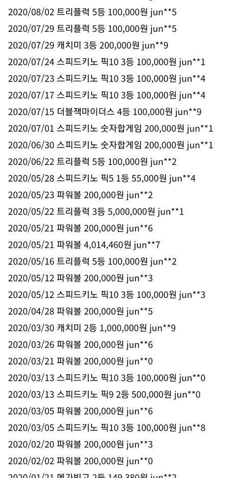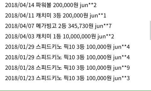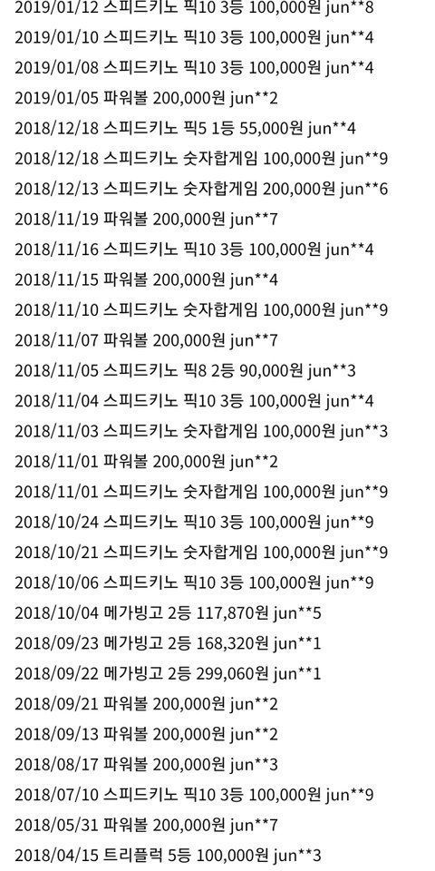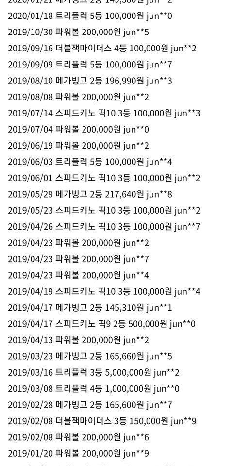 의심 아이디의 당첨기록
