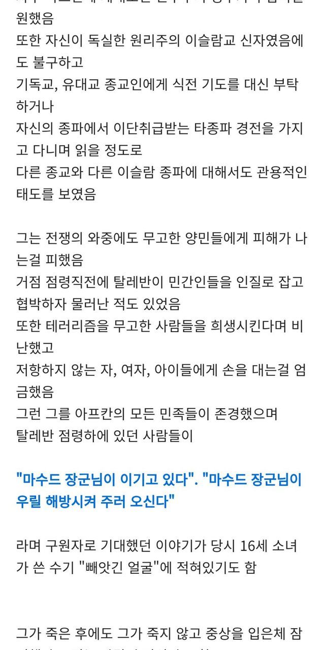 1. 마수드가 이끄는 저항군은 주둔지 내에 병원과 학교가 있었고 여성들도 마음껏 교육받을 수 있으며