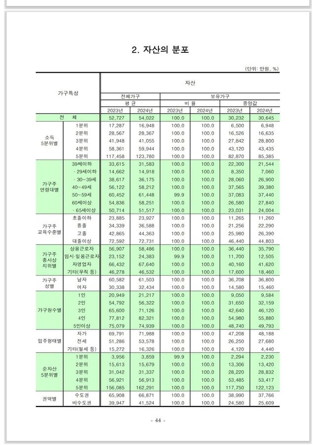 대한민국 자산통계로서는 정확하다 정평이 났으니