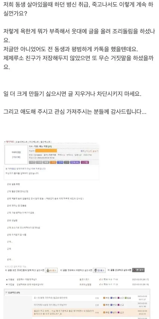 6. 유가족 및 지인분이 글을 남기는 족족 삭제되고 있음.