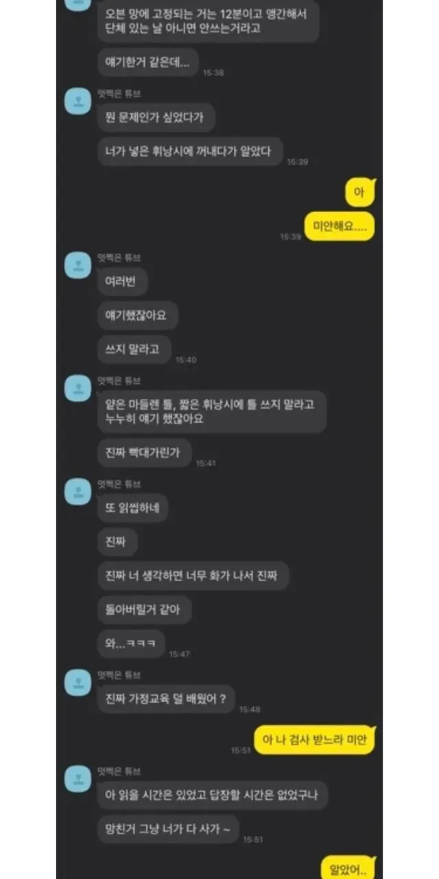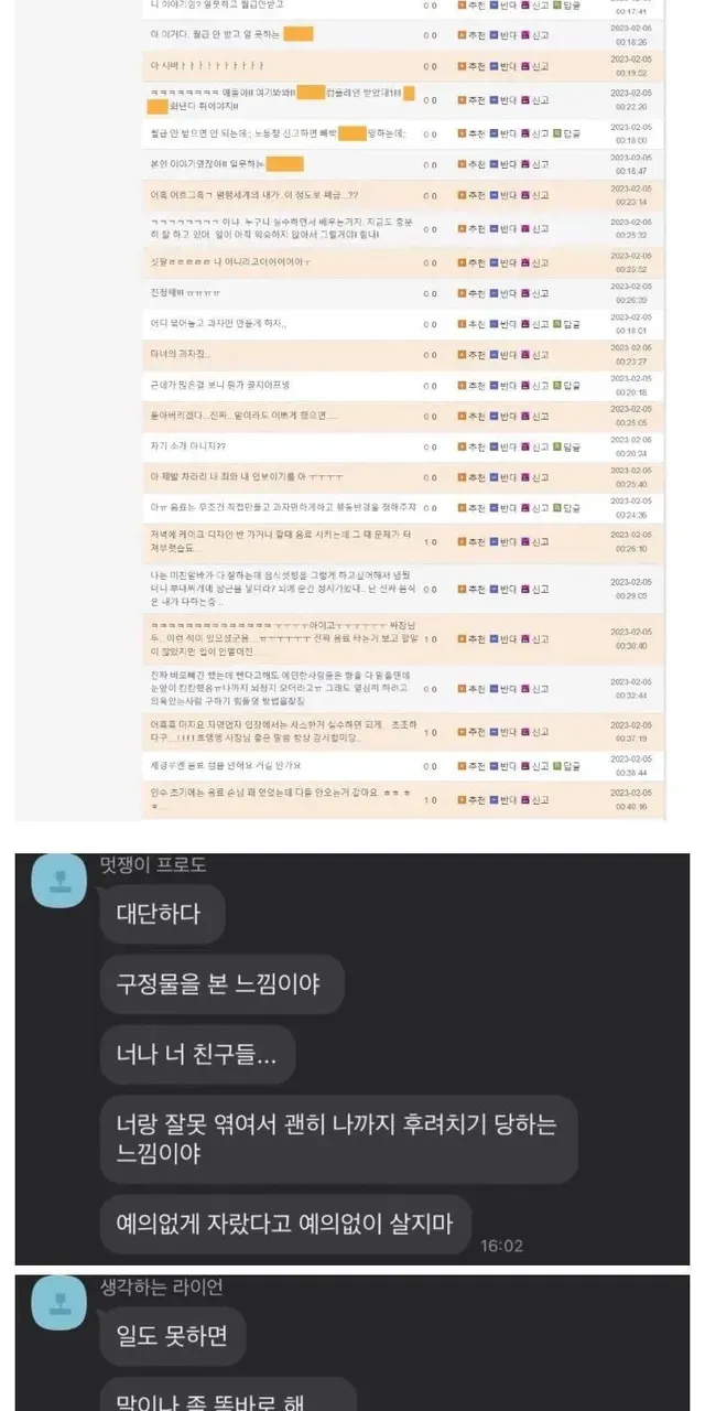 2. 해당 유저가 알바하면서 실수 같은게 많았던 모양인지 압박 받고 인신 모욕 당함.