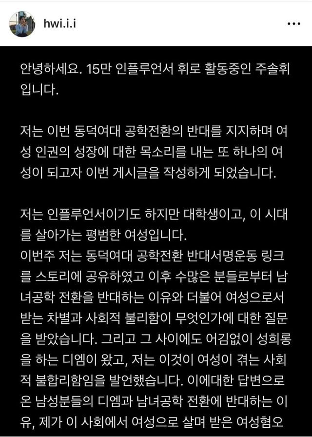 근데 지금은 비공개한건지 동덕여대 지지 게시글 사라진 상태
