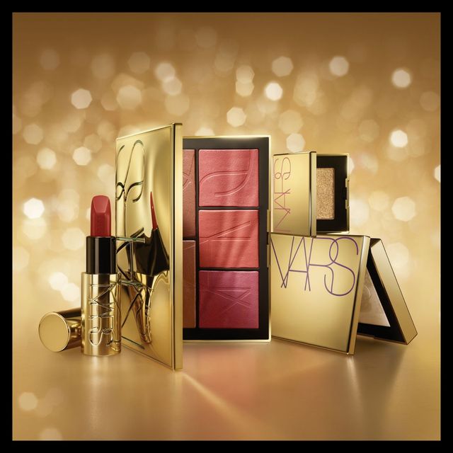 레드&골드 케이스의 립스틱과 별무늬로 장식된 빈티지한 느낌의 섀도 팔레트, 블러셔가 연말 한정으로 출시된다.