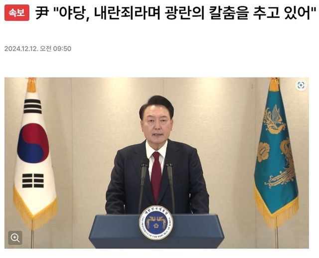 2024년 12월 12일 목요일 오전 9시 50분경 진행된 대통령 긴급담화 내용.