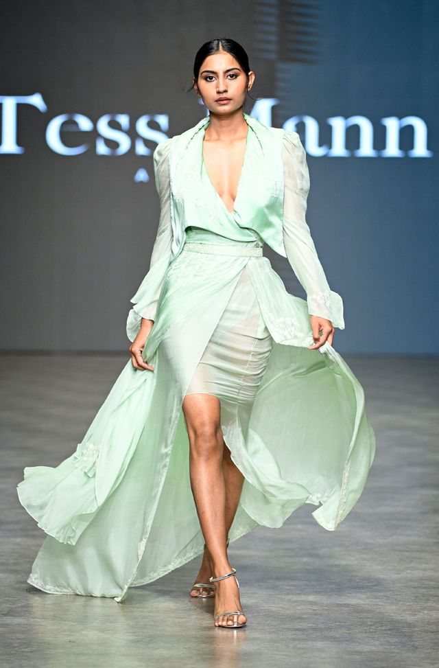 테스 만 아틀리에(TESS MANN ATELIER)는 혁신적인 디자인 접근법과 탁월한 수공예 기법으로 이름을 알린 디자이너 브랜드다. 새 시즌 컬렉션은 부드러운 우아함과 강렬한 파워가 감각적으로 조화를 이룬 걸작으로 평가되어 눈길을 끈다. 섬세하고 유려한 실루엣과 부드러운 색조가 열정과 절제미를 균형 있게 표현했고, 시처럼 흐르는 아름다움을 실체화한 듯한 디자인이 시선을 사로잡는다.