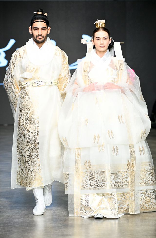전통 한복을 동시대적 시각으로 재해석한 한복 궁(HANBOK GOONG)이 ‘황홀경’ 컬렉션을 선보였다. 한복이 지닌 수수하면서도 우아한 멋과 정교한 만듦새로 완성된 한복 궁의 런웨이에는 요즘 일상에서도 쉽고 편하게 즐길 수 있는 새로운 스타일의 룩이 가득하다. 디자이너 이은진은 전통 의상에 현대적 디테일과 감각적 색채를 조화롭게 담아내 보는 이들의 눈과 마음을 모두 사로잡는 데 성공했다.