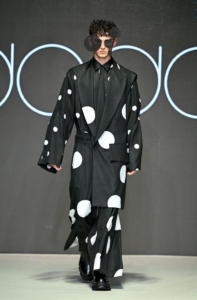 점(pattern)을 테마로 혁신적 컬렉션을 선보이는 도돗토(DODOT.)는 다양한 크기의 점을 조화롭게 열거한 디자인으로 런웨이를 구성했다. 점은 선사시대부터 사람들의 몸을 장식해온 패션 방식으로 유구한 역사를 자랑하는 만큼, 도돗토는 이번 컬렉션을 통해 그 역사적인 깊이에서 발현되는 섬세하고 사려 깊은 이야기를 아름답고 모던하게 표현했다고.
